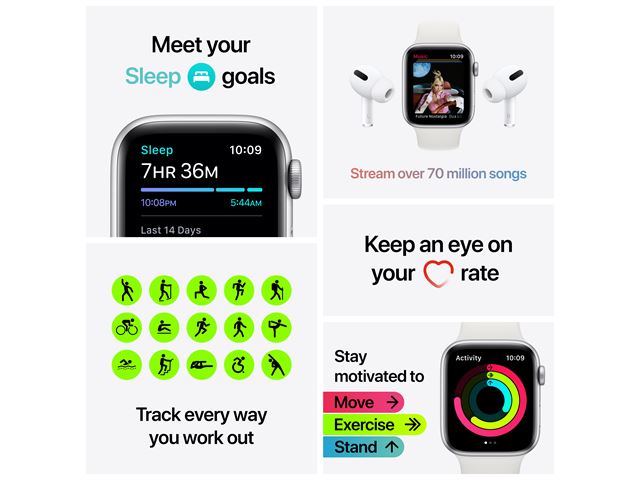 Je kunt de Apple Watch SE (44mm) wit onder andere gebruiken voor het sporten of het luisteren van muziek, maar ook als verlengstuk van je telefoon. Installeer diverse apps voor bijvoorbeeld sport en houdt al je prestaties bij.