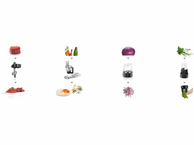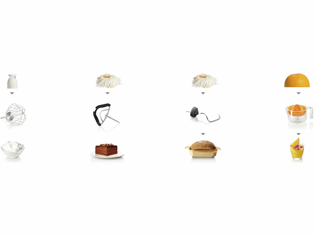| Functies | kloppen en mixen, kneden, citruspers, blender, hakken en snijden, vleesmolen, pulseren |